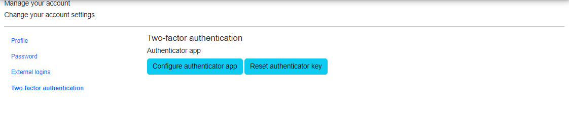 Select 'Two-Factor Authentication' Click on ‘Configure authenticator app’ if you want to configure.