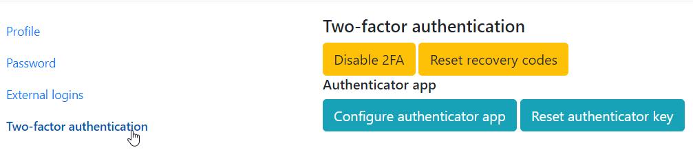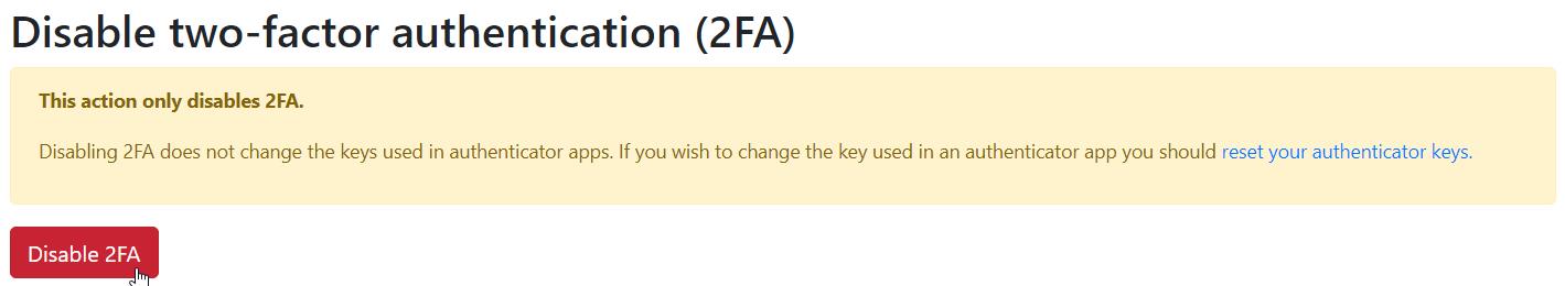 Clicking on the Disable 2FA will disable the 2 factor authentication.