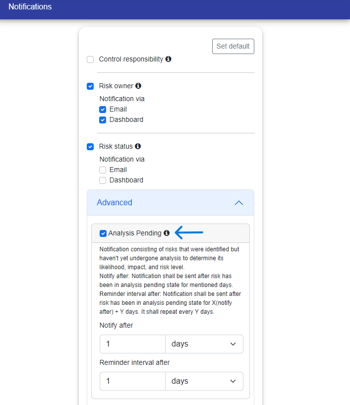 If the risk is in Analysis Pending stage and nothing is being done, it will notify the risk owner after the notify time is over.