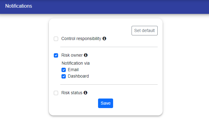 Notifications can be sent via email or display risk related notifications can be activated or deactivated based on system level.