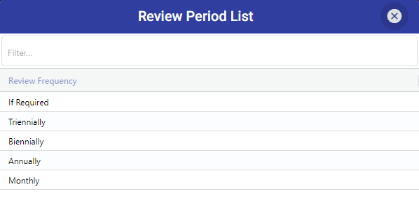 After filling in the reason and clicking "OK," you can see the list of review period. From this list, you can select the desired new review frequency for the supplier.