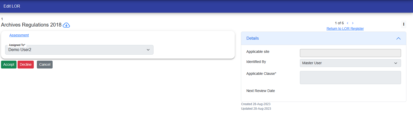 If the LOR is assign to User, then he/she can accept or decline to work on it accordingly.