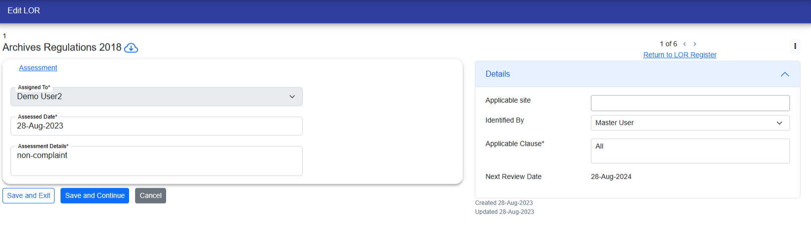 - Only the user who has been given access to the LOR can edit or add data in the fields.