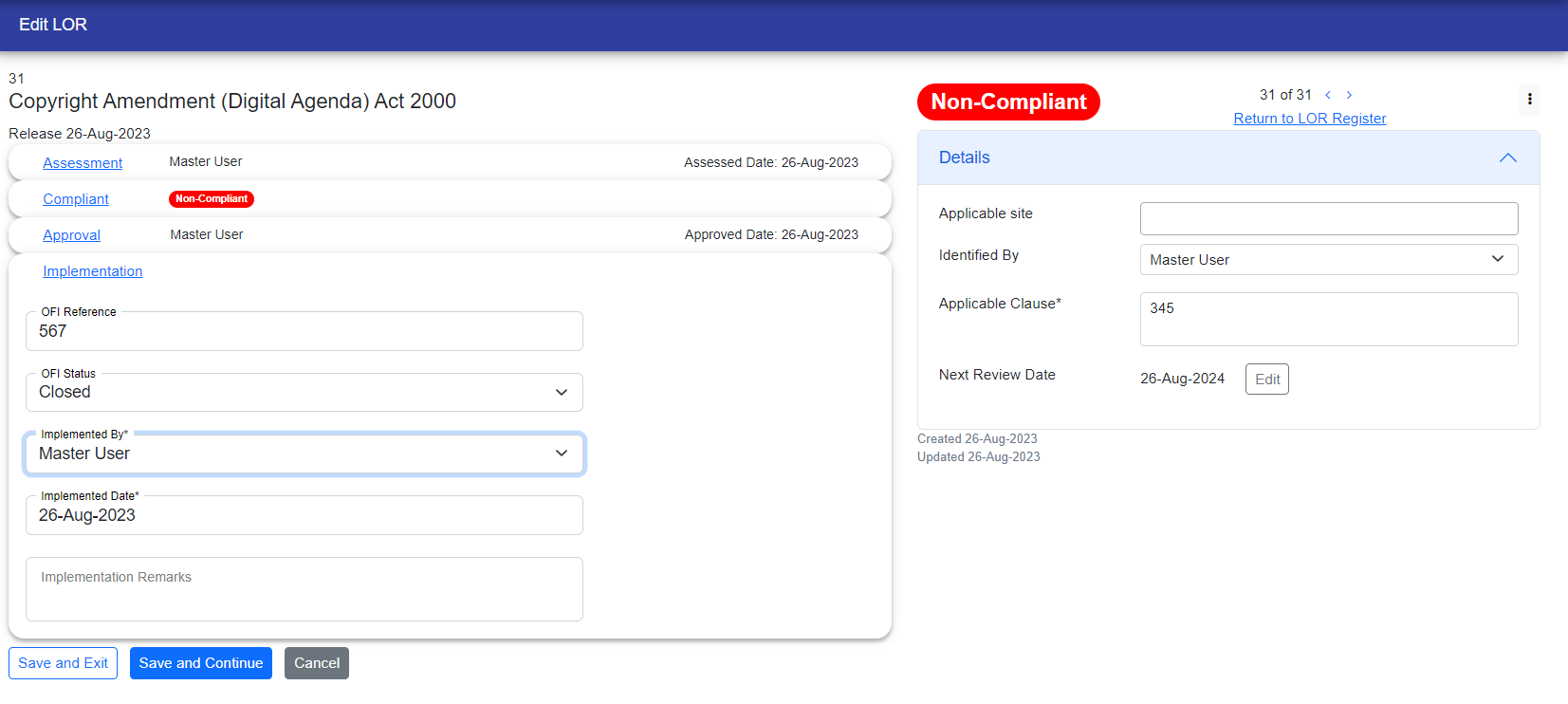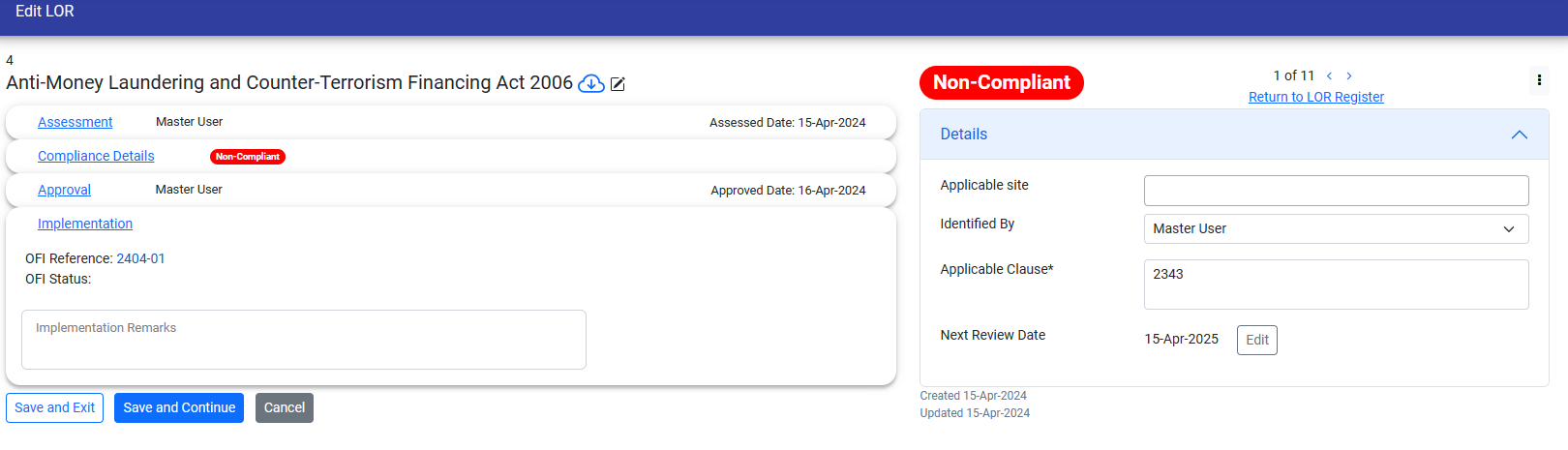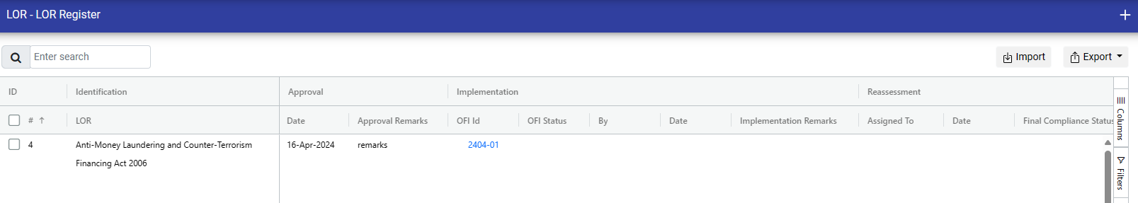 If you have problem management access, OFI will be generated automatically. Clicking on a link will redirect you to the corresponding OFI, which will also be displayed in the LOR register page under the OFI ID column.