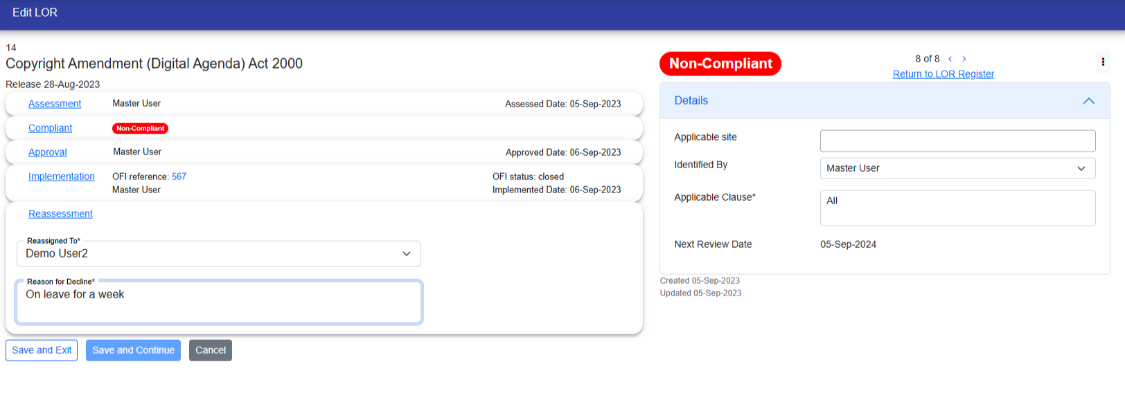 The Last step is reassessment, in which you need to select a user for reassessment who will check whether the LOR is complaint or not.