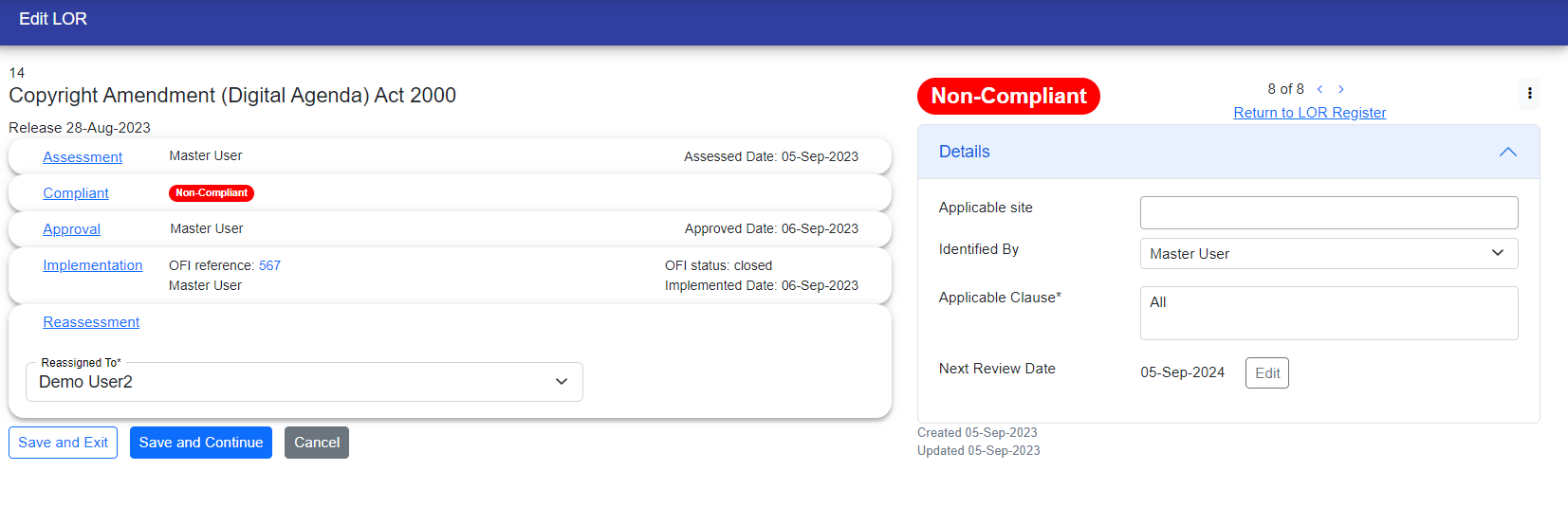 Once you've finished all the steps, your LOR will be considered compliant, and you will be redirected to the LOR register page.