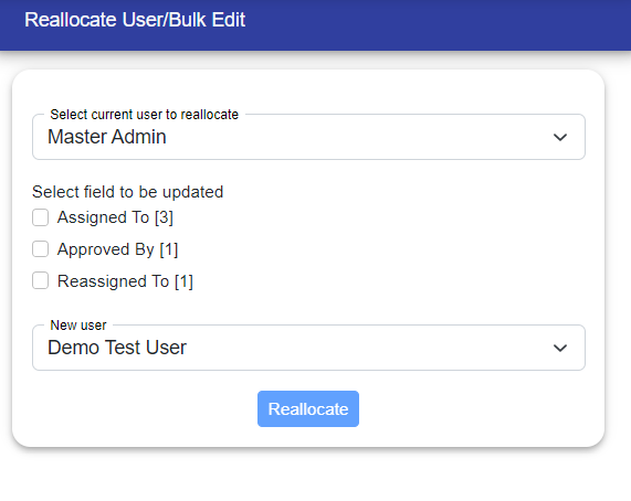 Step 2: Select for which field you have to relocate i.e, Assigned To, Approved By and Reassigned To Fields.