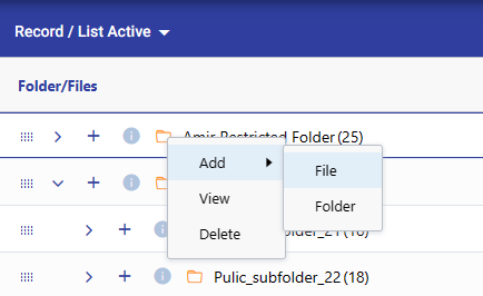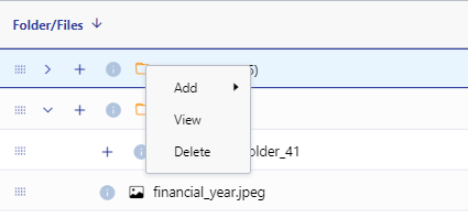 Additionally, Right click on any folder to add file/sub folder, view and delete folder.