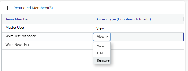 Additionally, managers can change the access type of a user by double-clicking on the "Access Type" column.