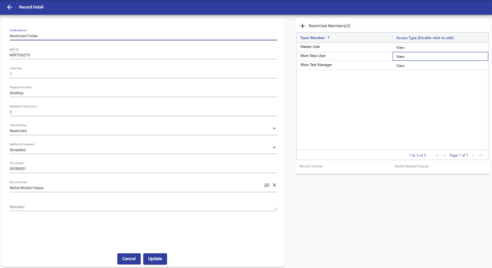 View Folder/File : If your folder/file is restricted, the manager has access to add or remove restricted members.